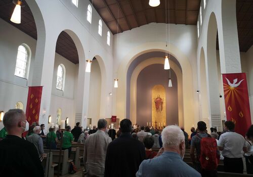 "Zwei Schritt vor, einer zurück". So waren die ersten Worte von Dr. Stäblein, Bischof der Evangelischen Kirche Berlin-Brandenburg-schlesische Oberlausitz (EKBO) in seiner Predigt. Eine Predigt, die so nah am Pilgerleben war, dass man in Gedanken mitlief. Und so richtig Rund machte das Bild, der vorangegangene Einmarsch der vielen, vielen Pilger in ihren Pilgeroutfits. Ein Gefühl wie in Santiago.