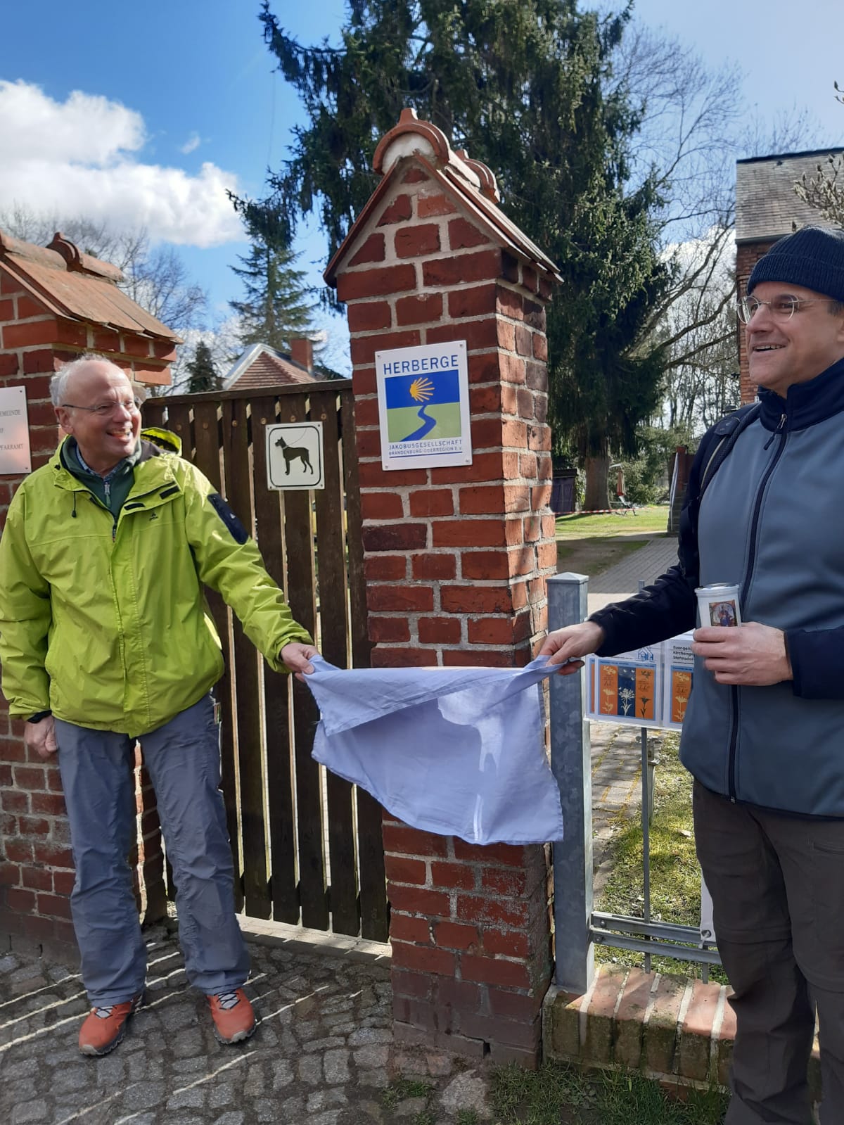 Am 17. März haben wir als Jakobusgesellschaft zusammen mit Vertretern der Ev. Kirchengemeinde Stahnsdorf die dortige neue Pilgerherberge, in den Gemeinderäumen direkt gegenüber der Dorfkirche, im Rahmen eines festlichen Passionsgottesdienstes und anschließender Pilgerwanderung nach Saarmund eingeweiht. 30 Pilgerinnen und Pilger haben an der Wanderung bei frischen, aber sonnigen Frühlingswetter teilgenommen.