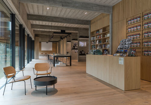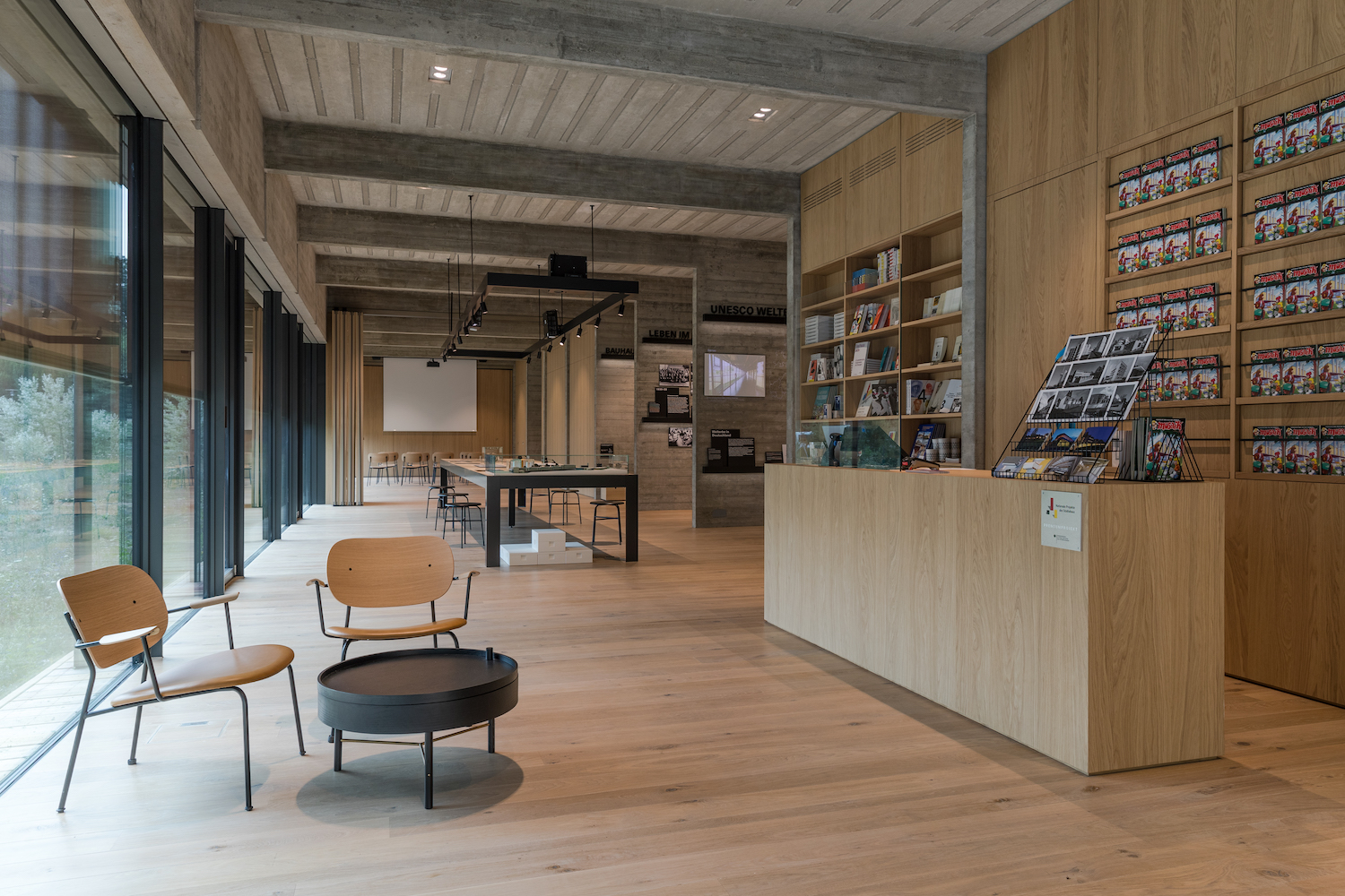 Fotos: Stempel (Toni Beß), Besucherzentrum Außenansicht (Jean Molitor), Besucherzentrum Innenansicht (Stefan Söll)