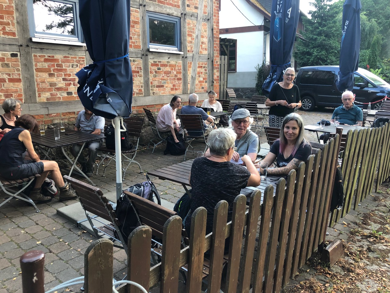 Schon zum 3. Mal seit 2019 machten sich im Rahmen des monatlichen Pilgertreffs diesmal 14 Pilgerinnen und Pilger auf den Weg von Britz zum Kloster Chorin. Wenn auch Start und Ziel der Pilgerwanderung gleich, so führen doch viele Wege zu dem Zisterzienserkloster. Bei hohen sommerlichen Temperaturen, war der Weg durch den Wald angenehm, die Picknickpause erholsam und das Bad im Großen Heiligen See erfrischend. Selbst den Ameisen auf der Ameisenbrücke war es wohl zu heiß, so dass sie kaum zu sehen waren. Am Ziel angelangt war noch Zeit für ein kühles Getränk aus der Klosterschenke. Schweigend in der Stille des Klosters konnten sowohl die Eindrücke des Weges als auch die Gedanken zur Ruhe kommen.