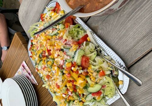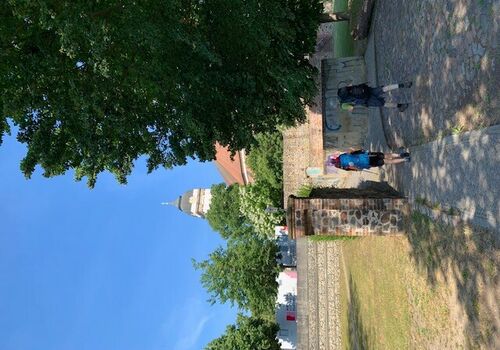 In Pillgram wurden wir herzlichst und sehr humorvoll von der Eigentümerin der Pension am Anger begrüßt und sofort lieb umsorgt mit Essen und Getränken. Die Gruppe plauderte, lernte sich und den Ort Pillgram kennen, bevor die Bettenplanung bevorstand. Es fühlte sich an wie eine Klassenfahrt!