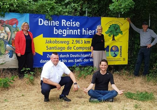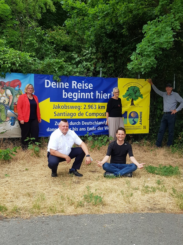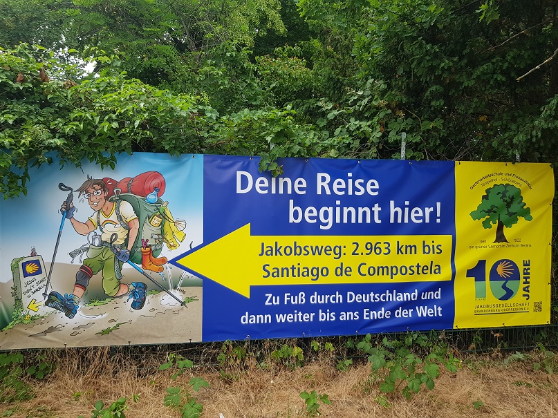 Pünktlich zu Beginn der Sommerferien wurde unser Jakobsweg-Banner an der Gartenarbeitsschule Tempelhof-Schöneberg ausgetauscht. Das bisherige Banner war leider Vandalismus zum Opfer gefallen. Mit Pilger-Karikatur wünschen wir allen Pilgerinnen und Pilgern einen guten Weg.