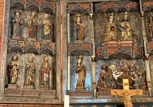 Die Rädler Küsterin kam uns schon auf dem Weg entgegen und führte uns zur Kirche. Auch sie konnte uns einiges aus der Historie der Dorfkirche und des Dorfes Rädel erzählen. Ein Gebet und ein gemeinsames Lied, natürlich von Freimut auf der Orgel begleitet, rundeten unseren Besuch ab und weiter ging es Richtung Kloster Lehnin.