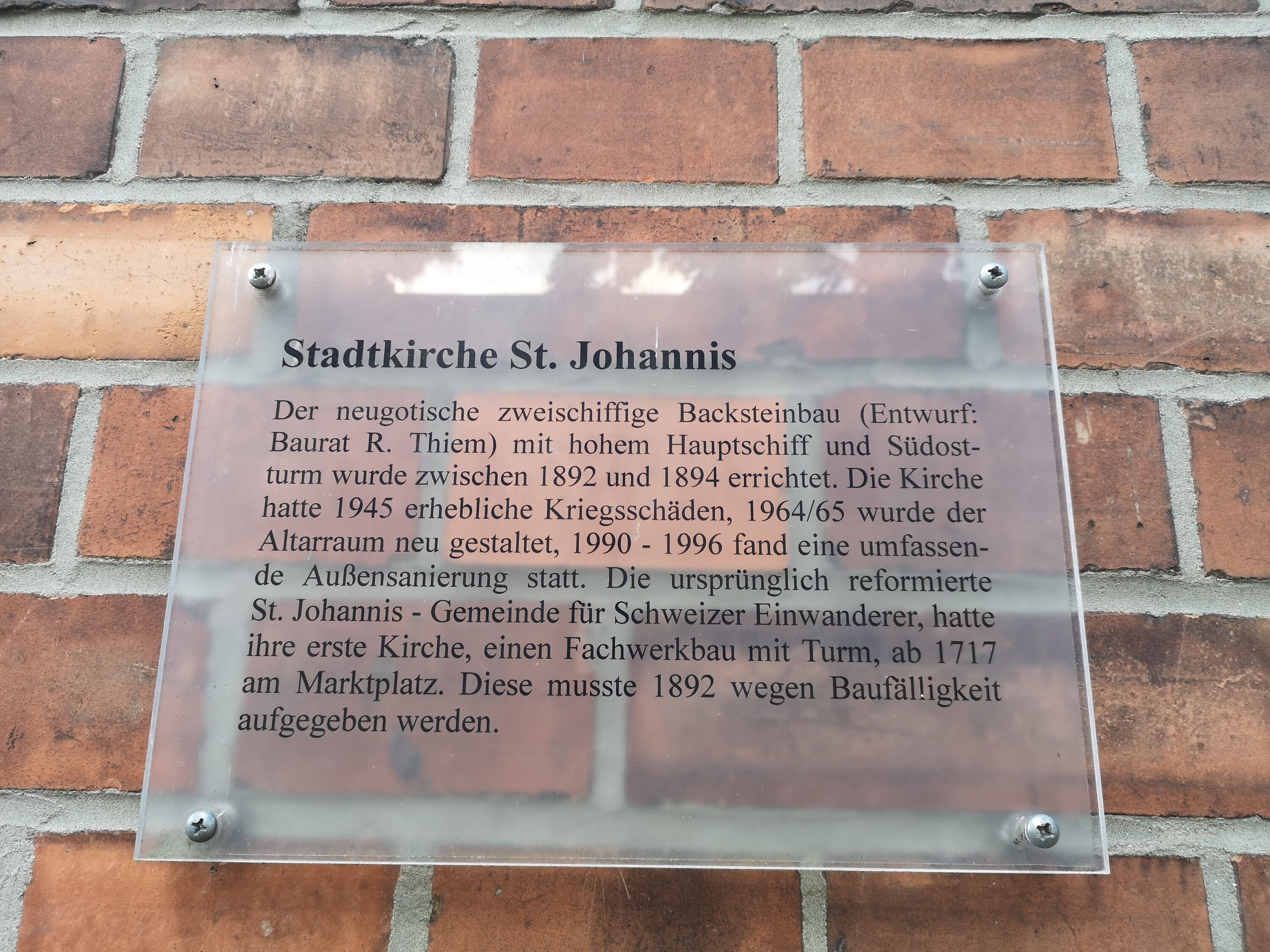 Die Johanniskirche wird seit 2012 nicht mehr von der Evangelischen Stadtkirchengemeinde für Gottesdienste und andere kirchliche Veranstaltungen genutzt, sie dient lediglich als Ausweichkirche. Die Kirche aus dem Jahr 1892 muss dringend saniert werden. Dies betrifft sowohl die Innenrenovierung des Hauptschiffs als auch das Mauerwerk und die Dachentwässerung.