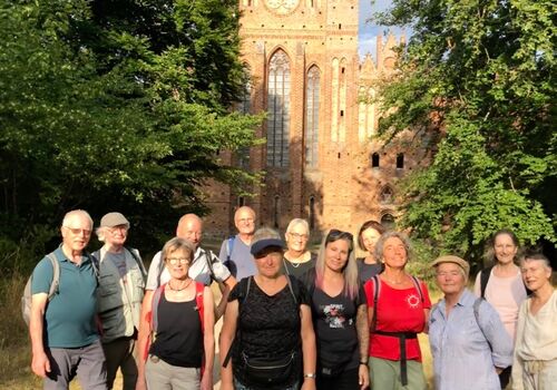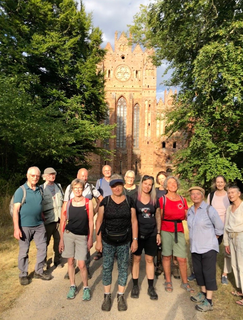 Schon zum 3. Mal seit 2019 machten sich im Rahmen des monatlichen Pilgertreffs diesmal 14 Pilgerinnen und Pilger auf den Weg von Britz zum Kloster Chorin. Wenn auch Start und Ziel der Pilgerwanderung gleich, so führen doch viele Wege zu dem Zisterzienserkloster. Bei hohen sommerlichen Temperaturen, war der Weg durch den Wald angenehm, die Picknickpause erholsam und das Bad im Großen Heiligen See erfrischend. Selbst den Ameisen auf der Ameisenbrücke war es wohl zu heiß, so dass sie kaum zu sehen waren. Am Ziel angelangt war noch Zeit für ein kühles Getränk aus der Klosterschenke. Schweigend in der Stille des Klosters konnten sowohl die Eindrücke des Weges als auch die Gedanken zur Ruhe kommen.