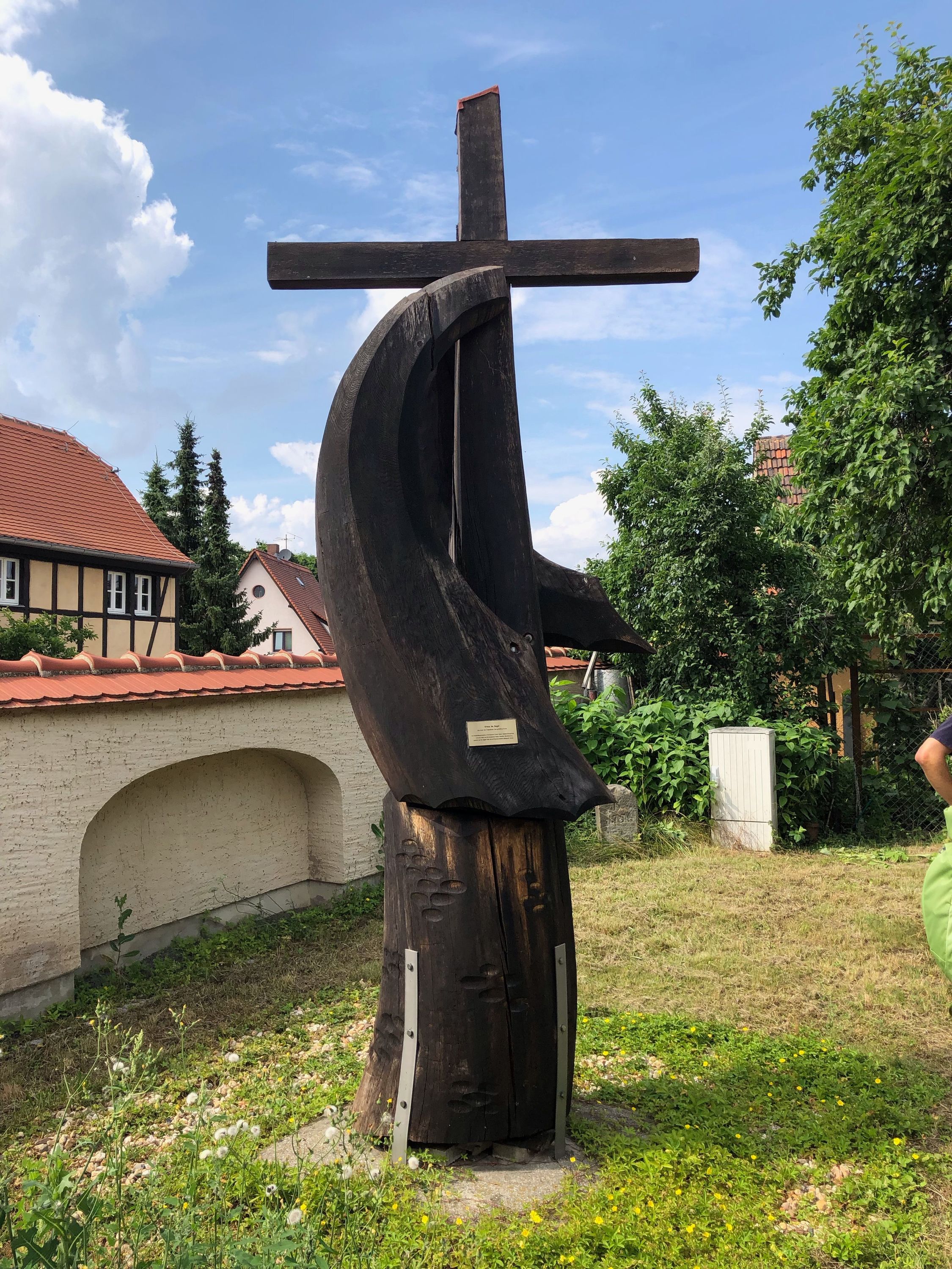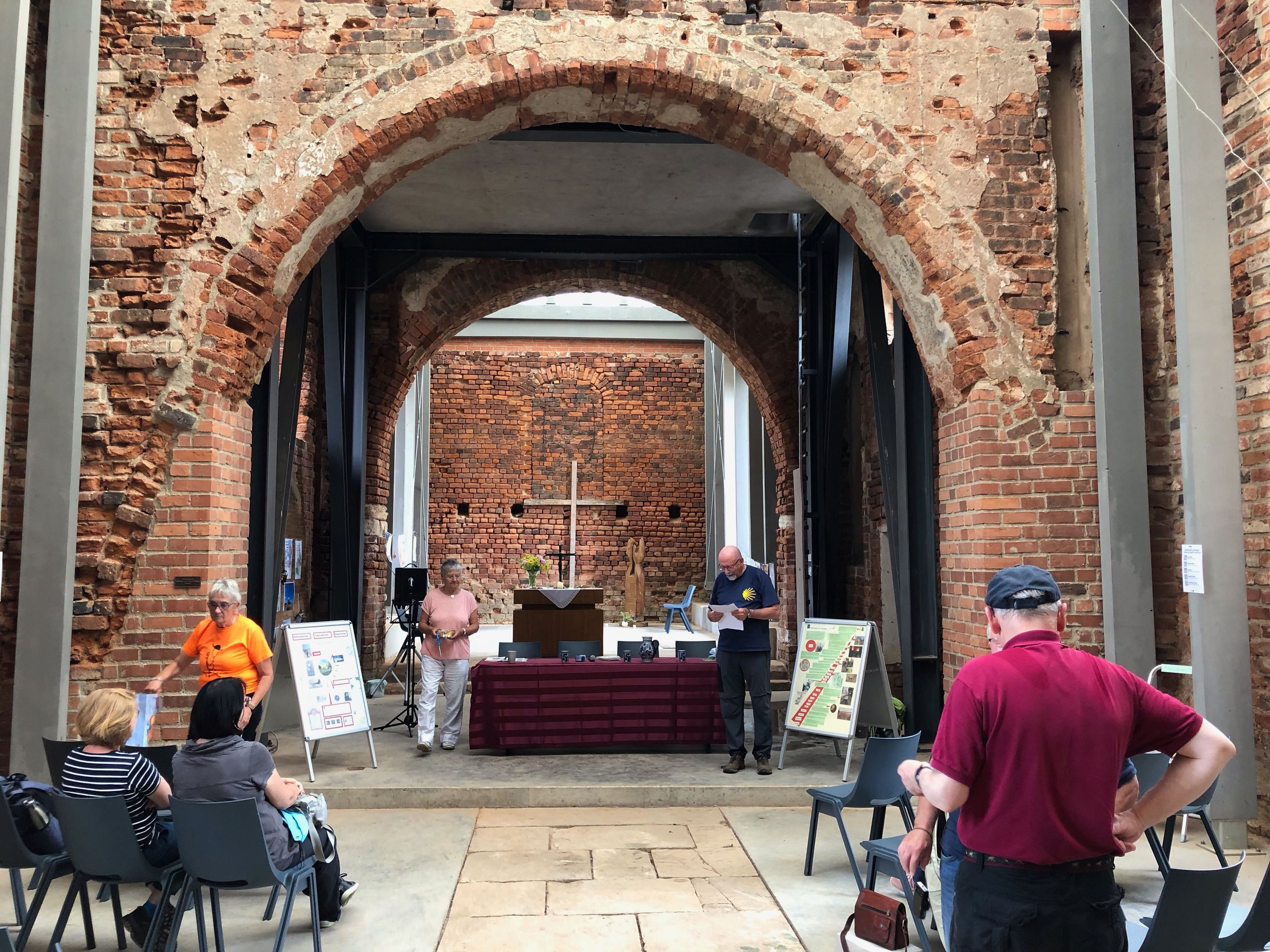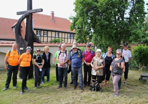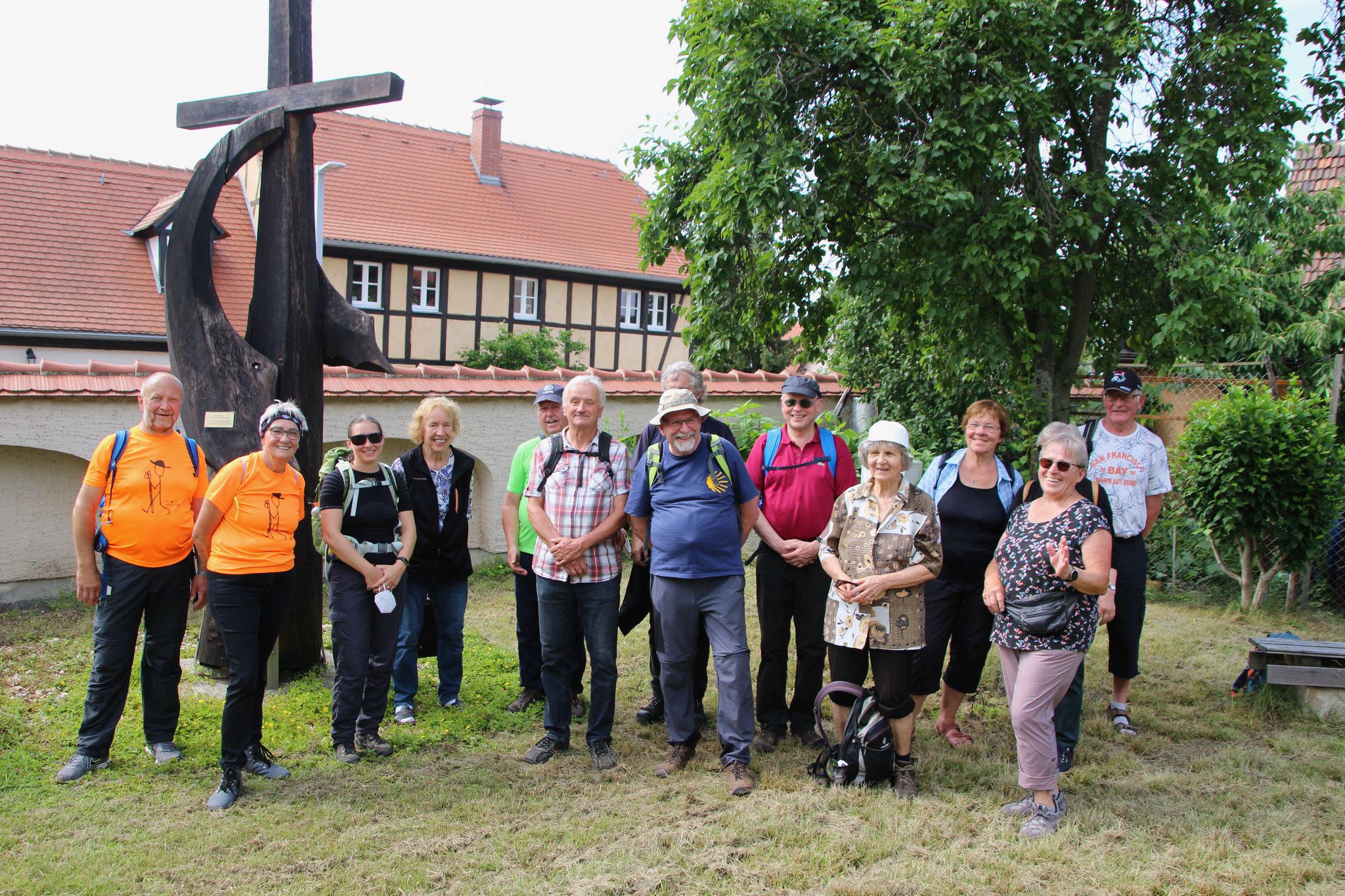 Zuvor gab es eine Pilgerwanderung von der Probsteikirche St. Trinitatis im Zentrum von Leipzig, direkt gegenüber dem Neuen Rathaus, nach Markkleeberg-Zöbigker, ca. 10 km, mit 16 Teilnehmenden. Wir hatten bestes Wetter und haben einen schönen Pilgertag zusammen mit unseren Sächsischen Freunden verbracht.