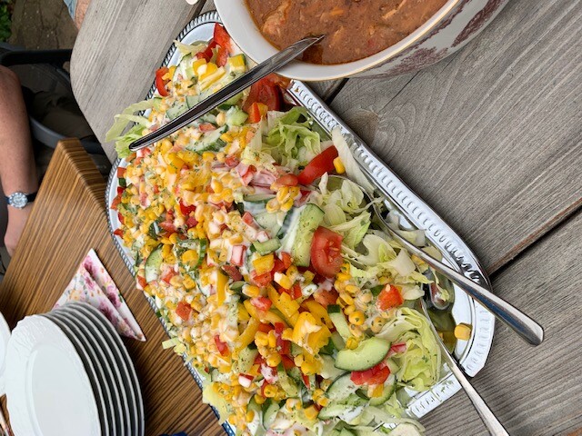 In Pillgram wurden wir herzlichst und sehr humorvoll von der Eigentümerin der Pension am Anger begrüßt und sofort lieb umsorgt mit Essen und Getränken. Die Gruppe plauderte, lernte sich und den Ort Pillgram kennen, bevor die Bettenplanung bevorstand. Es fühlte sich an wie eine Klassenfahrt!