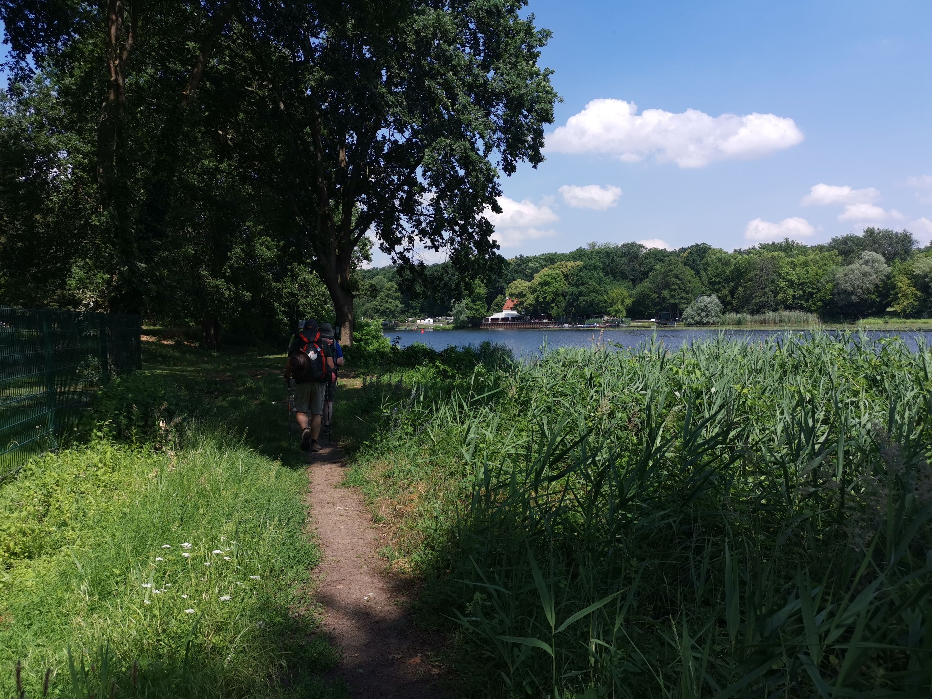 In der Sonne an der Müggelspree traten wir den finalen Marsch nach Hangelsberg an, wo wir ein kühles Getränk genossen. Anschließend trennten sich die Wege der Gruppe - ähnlich wie bei unserer Jakobsmuschel mit ihren Strahlen flogen die Pilger wieder in alle Richtungen aus. Bis auf ein Wiedersehen und es soweit ist, dass sich die Muschelstrahlen wieder treffen.